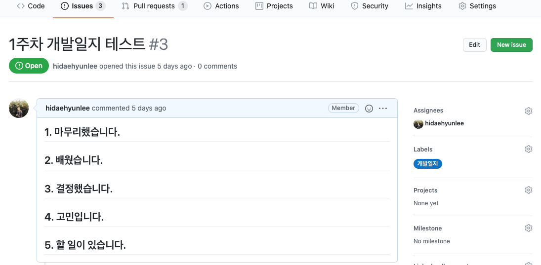 - Edit 버튼을 눌러, 마크다운 문법으로 작성
