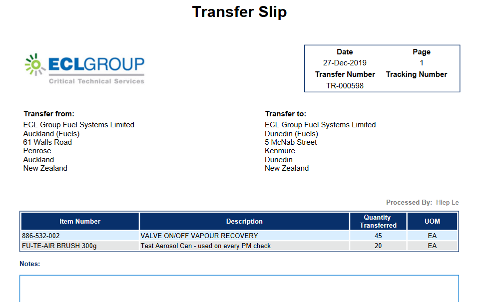 Receipt of Goods