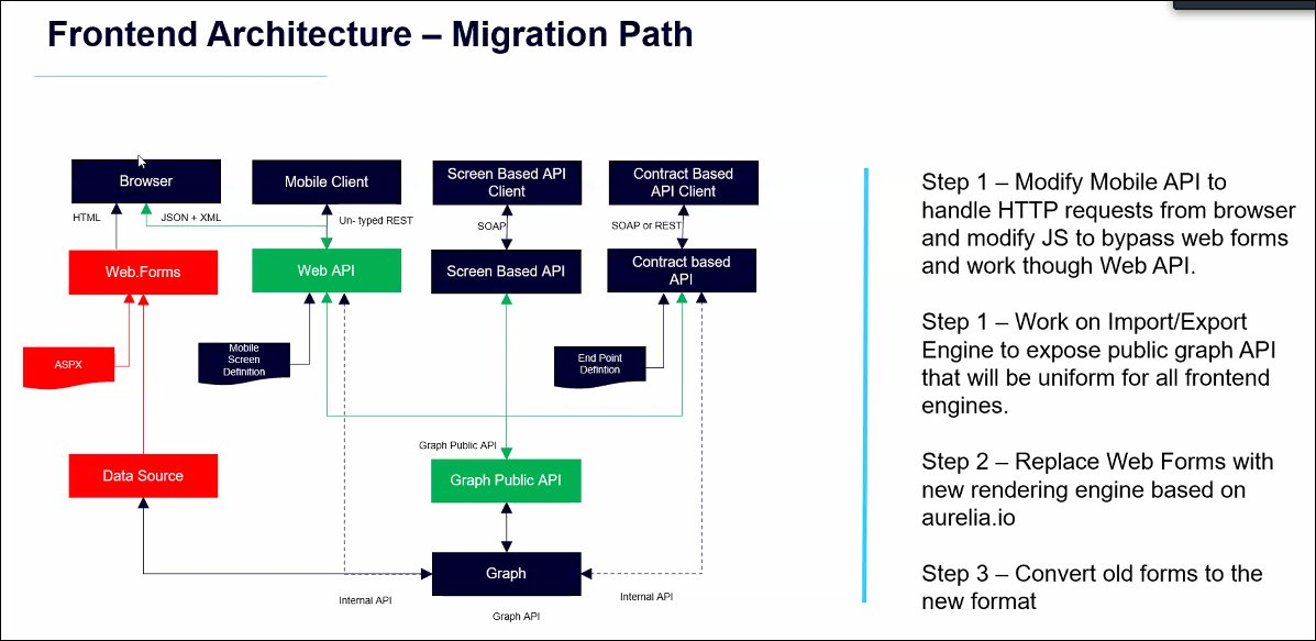 The big question from an engineering standpoint is how to move from the old front-end architecture to the new front-end architecture. This is how they are doing it in steps.