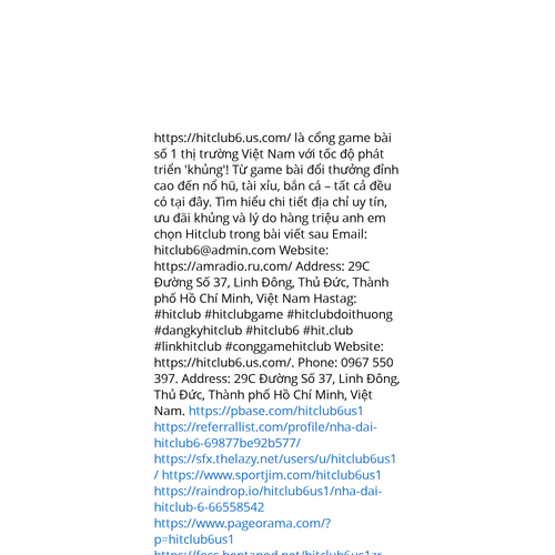 Website: https://hitclub6.us.com/. https://hitclub6.us.com/ là cổng game bài số 1 thị trường Việt Nam với tốc độ phát triển 'khủng'! Từ game bài đổi thưởng đỉnh cao đến nổ hũ, tài xỉu, bắn cá – tất cả đều có tại đây. Tìm hiểu chi tiết địa chỉ uy tín,