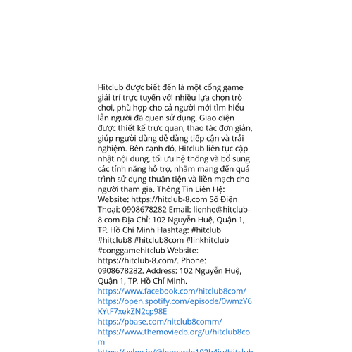 Website: https://hitclub-8.com/https://hitclub-8.com/ Hitclub được biết đến là một cổng game giải trí trực tuyến với nhiều lựa chọn trò chơi, phù hợp cho cả người mới tìm hiểu lẫn người đã quen sử dụng. Giao diện được thiết kế trực quan, thao tác đơn giản, giúp người dù