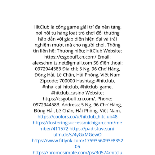 Website: https://csgobuff.cn.com/. HitClub là cổng game giải trí đa nền tảng, nơi hội tụ hàng loạt trò chơi đổi thưởng hấp dẫn với giao diện hiện đại và trải nghiệm mượt mà cho người chơi. Thông tin liên hệ: Thương hiệu: HitClub Website: https://csg