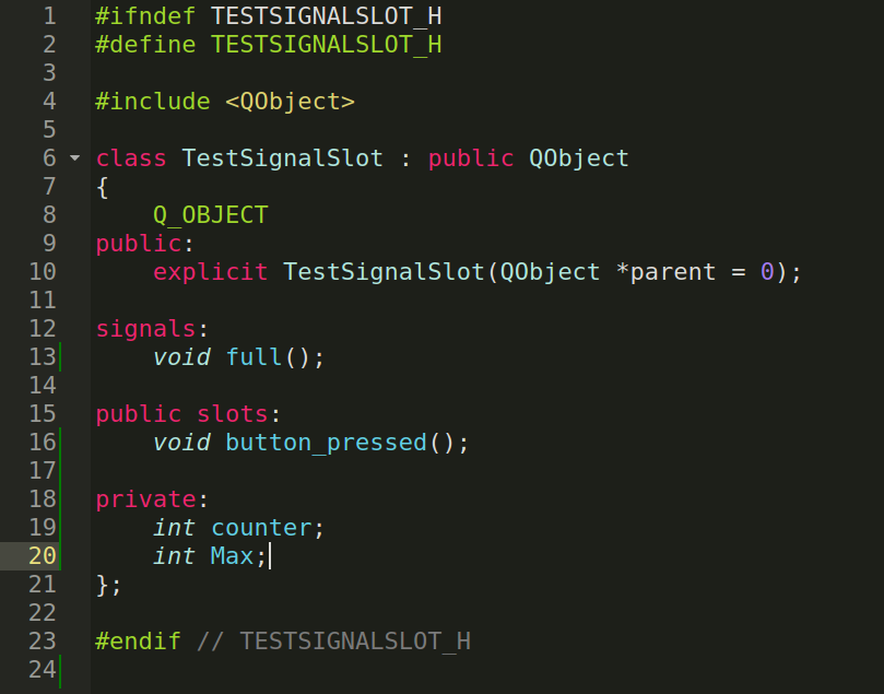 - To use signals and slots, your object must be a derived class of "QObject" and use the "Q_OBJECT" macro.