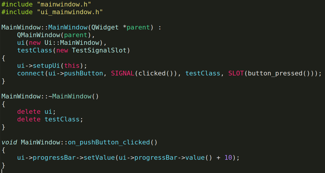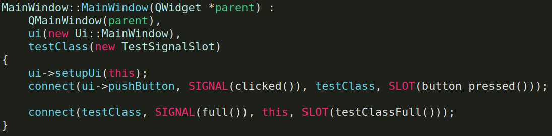 connect(testClass, SIGNAL(counter_changed(int)), this, SLOT(testClassChanged(int)));Advanced