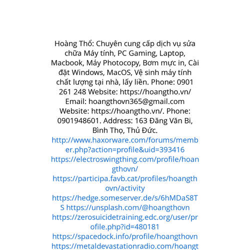 Website: https://hoangtho.vn/. Hoàng Thổ: Chuyên cung cấp dịch vụ sửa chữa Máy tính, PC Gaming, Laptop, Macbook, Máy In Laser, Thay mực in, Cài đặt Windows, MacOS, Vệ sinh Laptop chuyên nghiệp tại nhà, lấy trong ngày. Phone: 0964 715 703 Websit