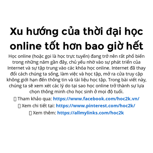 Website học online trực tuyến uy tín toàn quốc, giải bài tập, giải đề thi chính xác nhất. Học tốt các môn từ lớp 1 đến lớp 12. Soạn bài ngắn nhất, văn mẫu hay nhất. Học thêm những kỹ năng mềm phát triển bản thân dành cho học sinh tại https://hoc2k.vn
