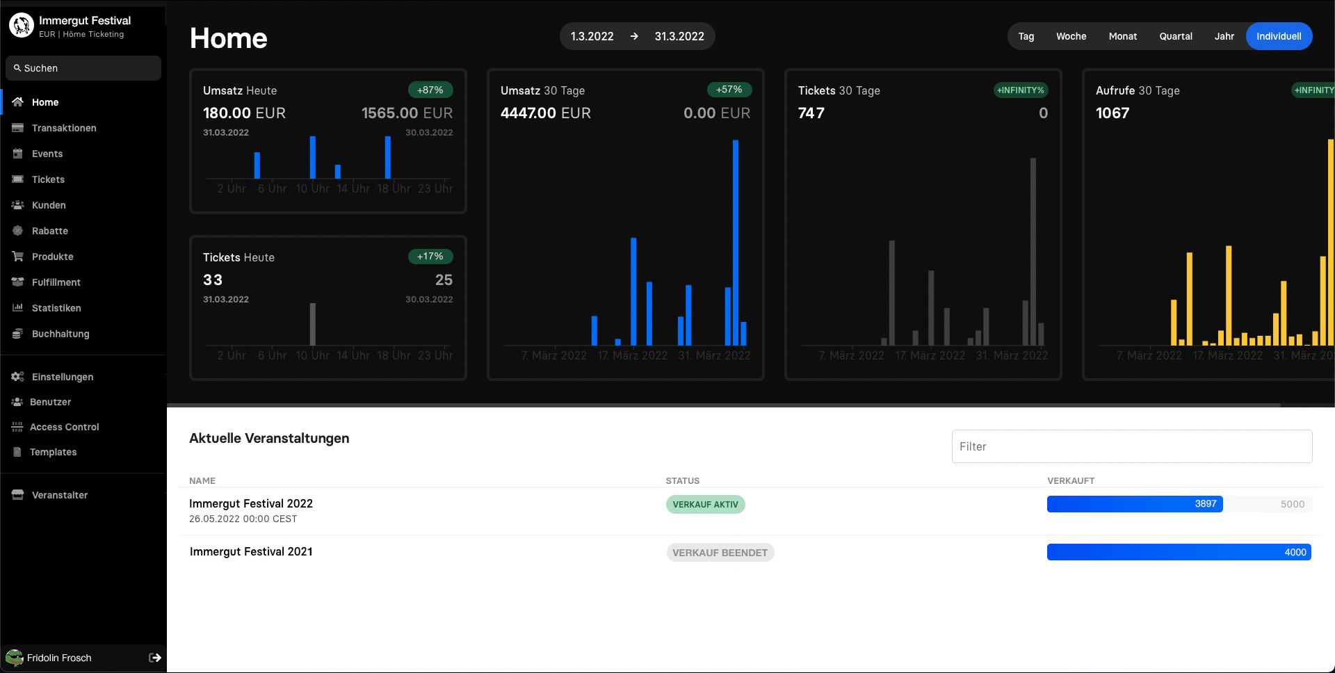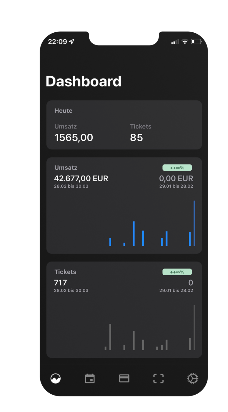 Verkaufsdaten: Erhaltet jederzeit über die Management App aktuelle Verkaufszahlen.