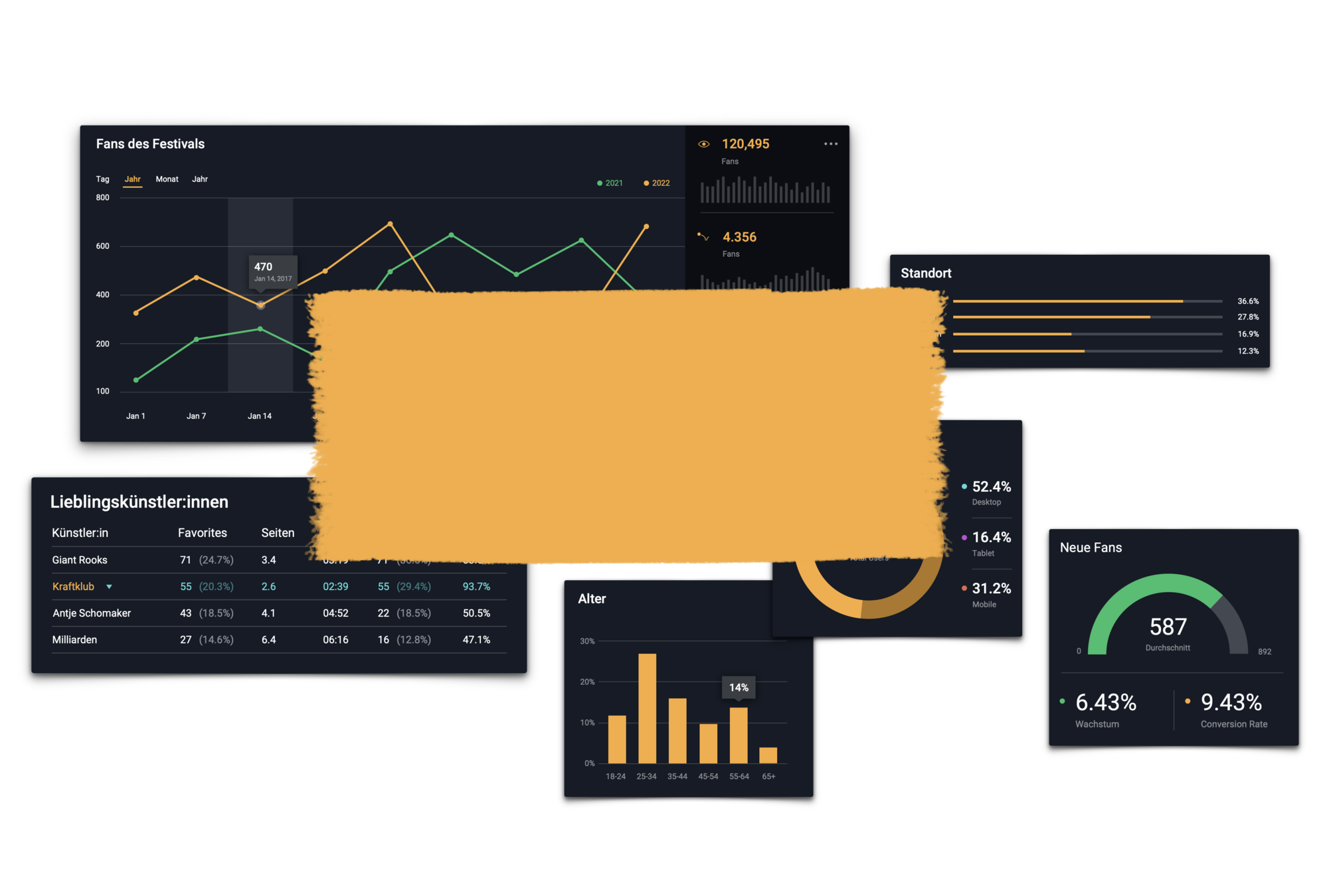 Wir setzen in Zukunft die Daten aus Ticketing & App zusammen, die euch dabei helfen euer Festival weiter zu formen (natürlich alles DSGVO konform). Zum Beispiel: