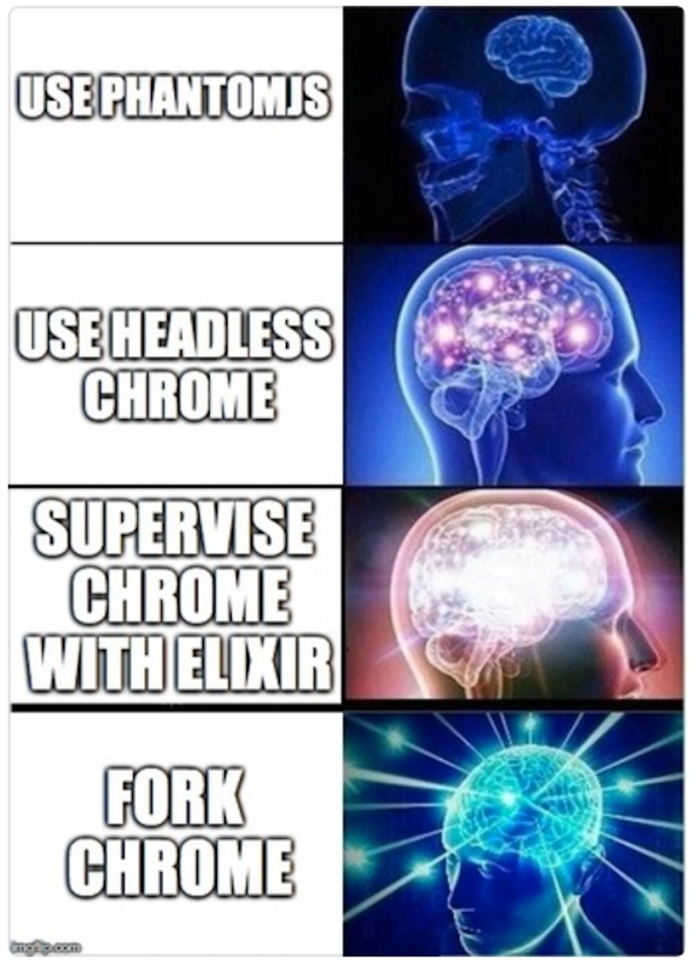 - Managing Chrome in Elixir supervision trees gives us the resiliency we desire.