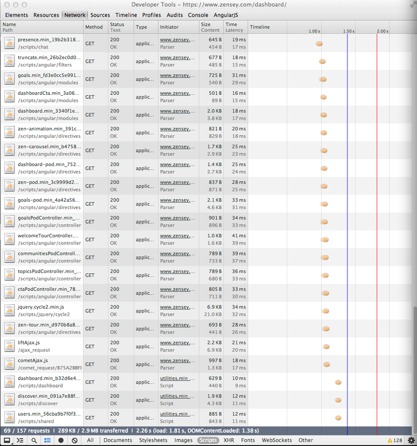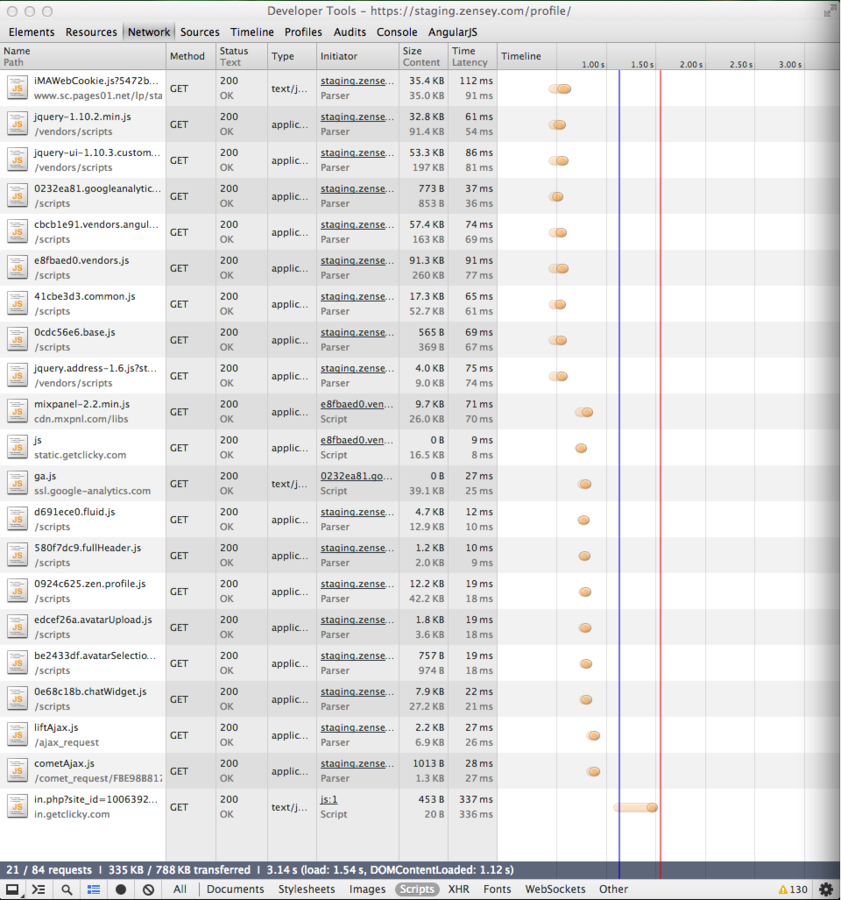 Staging (Grunt): 19 HTTP requests with avg. 1.87 s load time