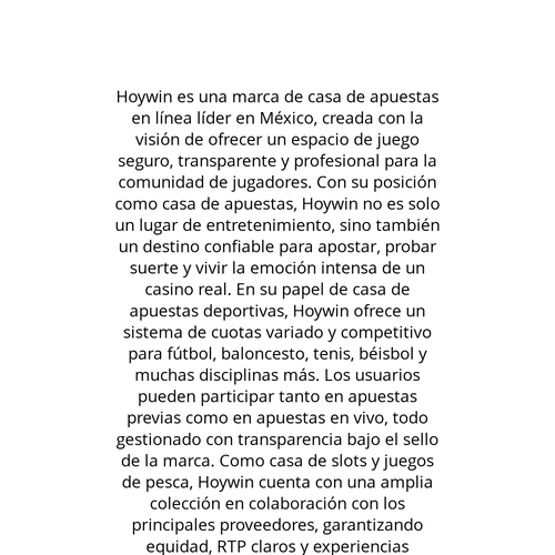 Website: https://hoywin11.com/. Hoywin es una marca de casa de apuestas en línea líder en México, creada con la visión de ofrecer un espacio de juego seguro, transparente y profesional para la comunidad de jugadores. Con su posición como casa de apue