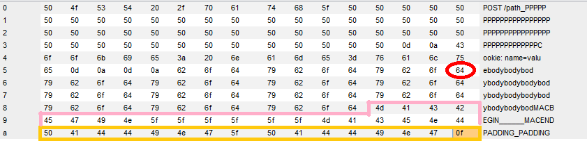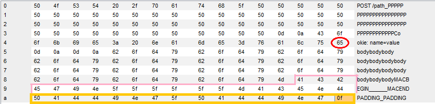 GET /AAAA\r\nCookie: n1=v1\r\n\r\n || 20bytes-MAC ‖ padding