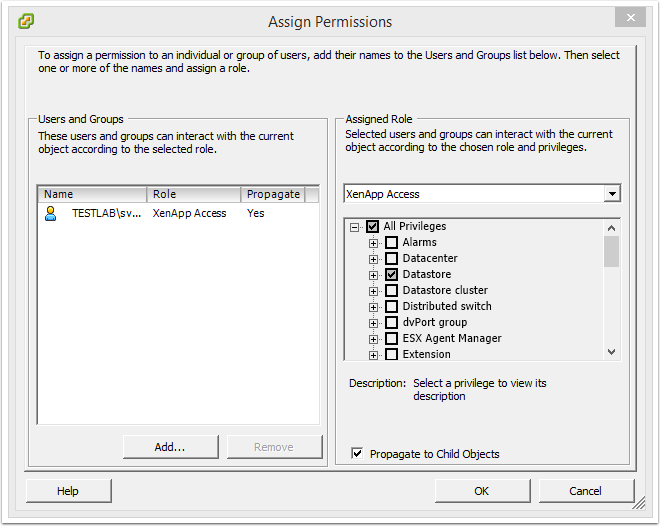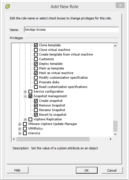 4. Configure the XenApp security role with the permissions required by Citrix XenApp server.