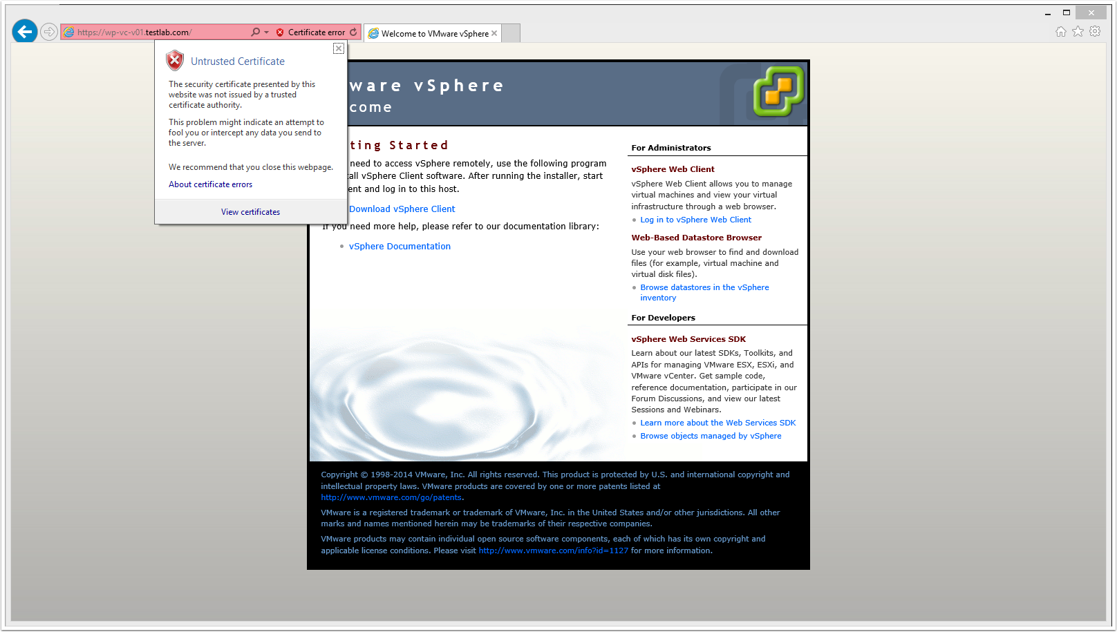 8. From the address bar click on Certificate Error and select View Certificates