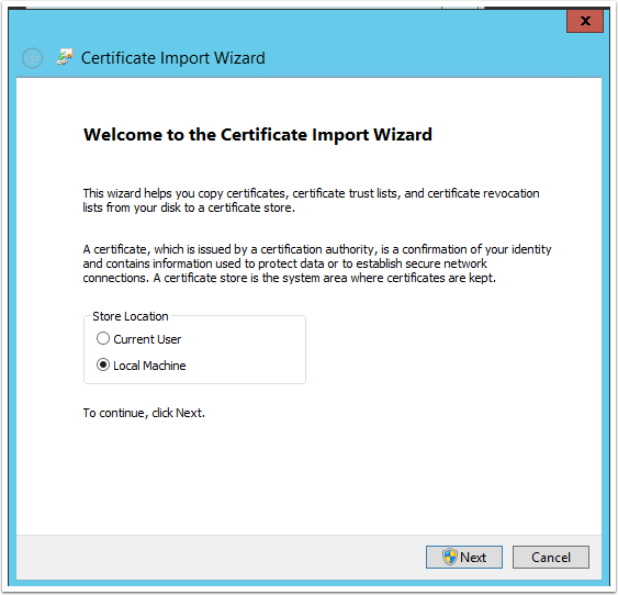 11. Store the certificate on the local disk and click Next