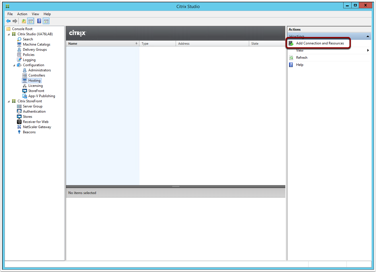 15. Launch Citrix Studio >> Configuration >> Hosting >> Add Connections and Resources