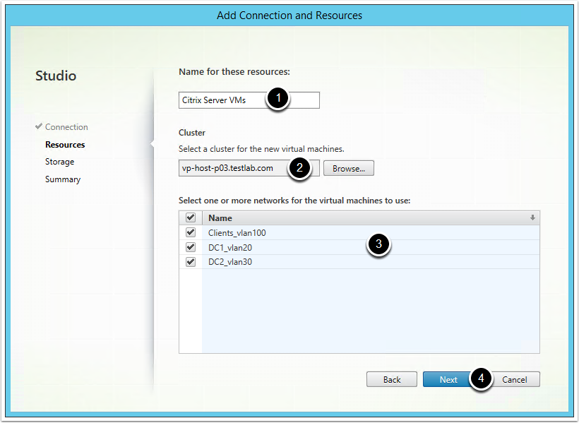 3. Select the Networks that can be used by Citrix VMs