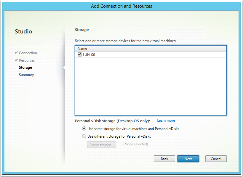 18. Select the Datastores you want to allow Citrix to use and click Next