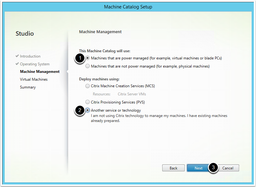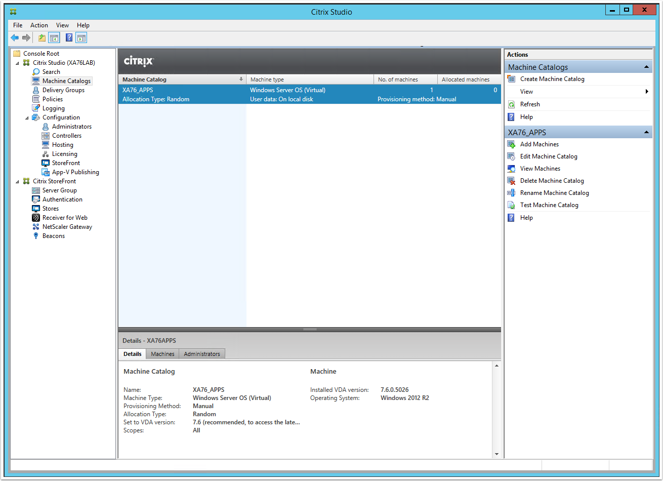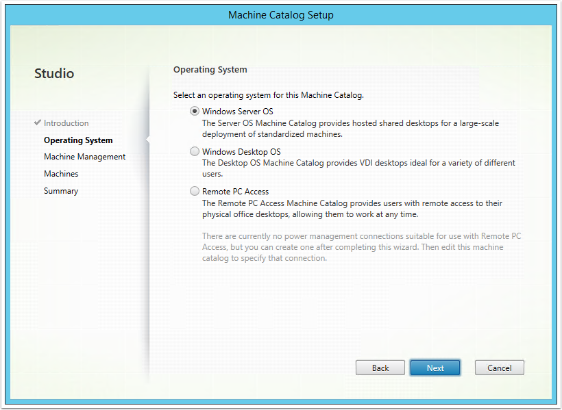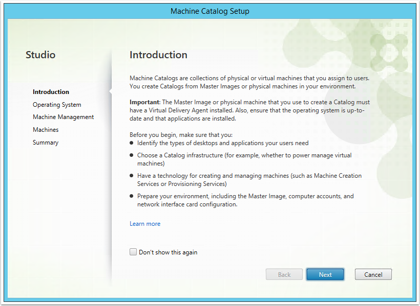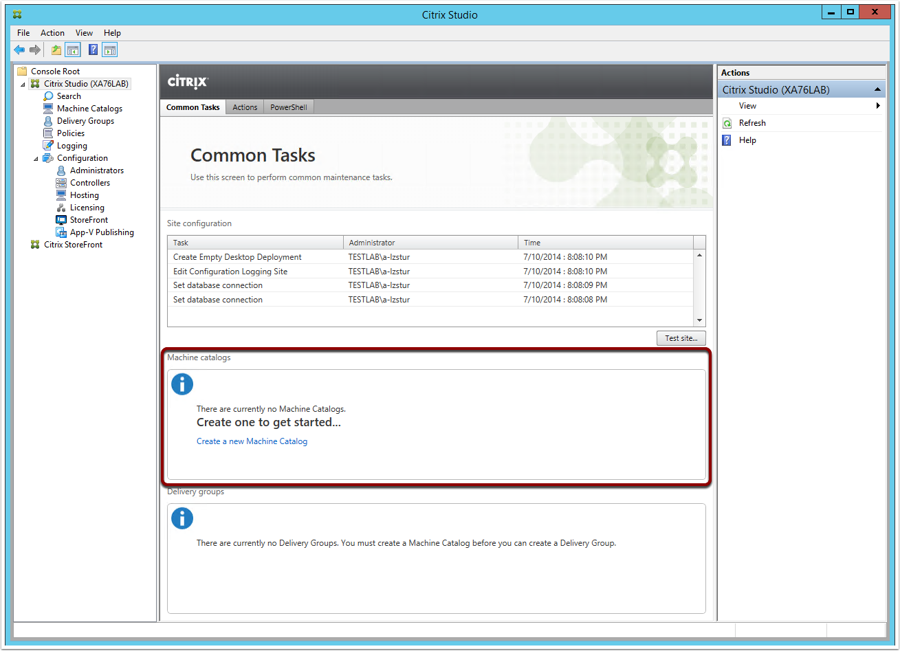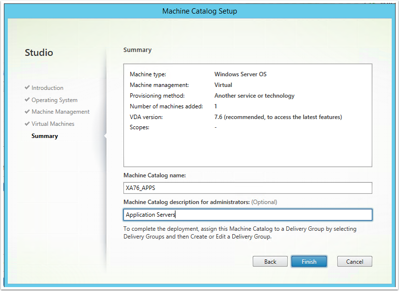 Note: Alternatively you can create a new Machine Catalog from the corresponding section in the Main Menu