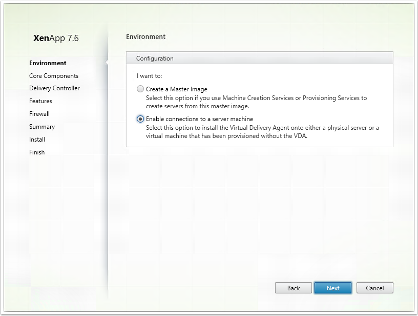 1. Ensure XenApp 7.5 (or later) is selected
