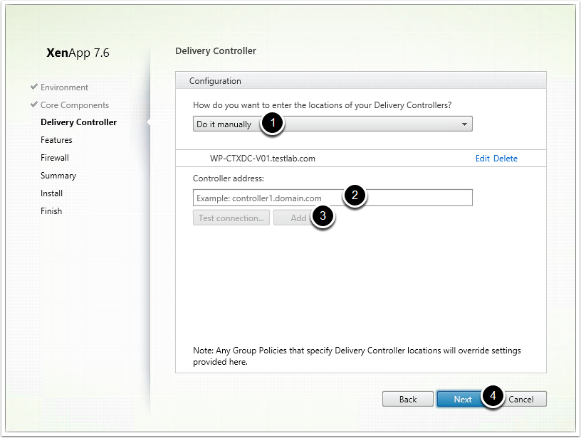 2 .Click on Add and enter the name of the Citrix Delivery Controller (repeat for all controllers)