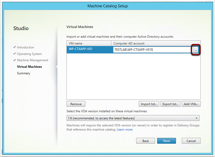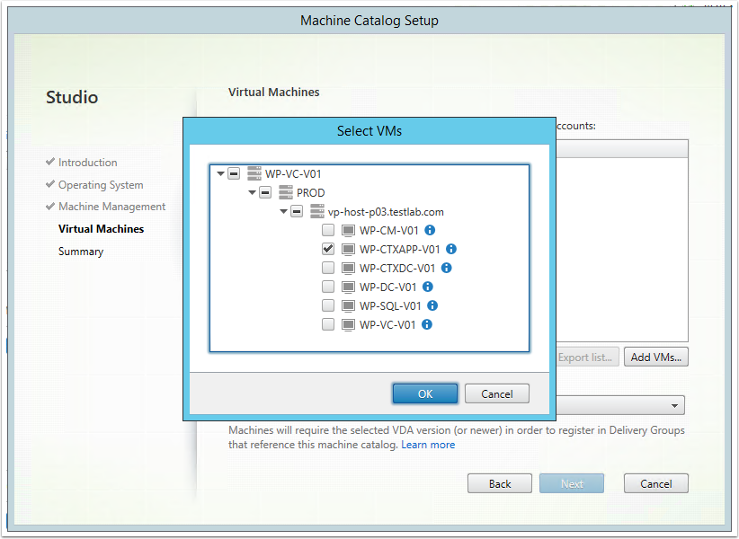 1.Select the Machine Catalog you want to add into the Delivery Group (in this example we only have one)