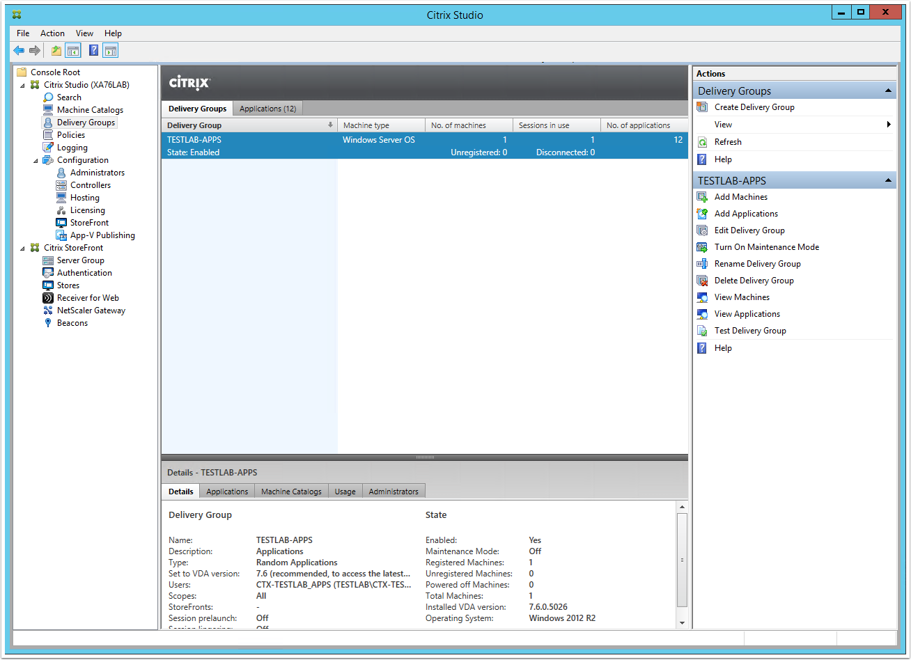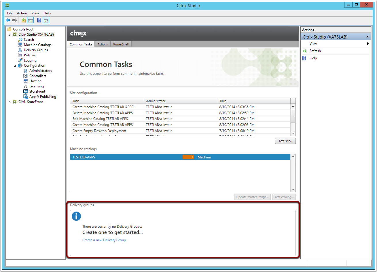 From the Citrix Studio root window, click on "Create a new Delivery Group" link