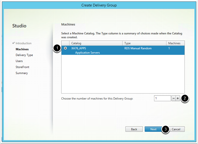 2. Chose the number of machines from the Machine Catalog that will be used in the Delivery Group