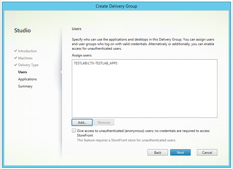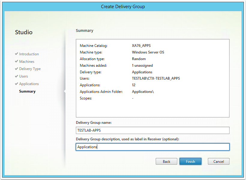 - Setup Delivery Group