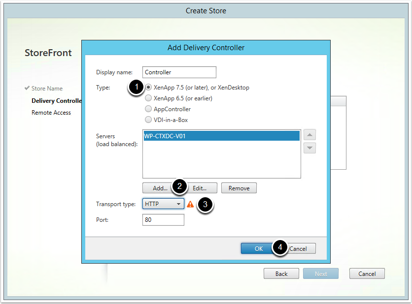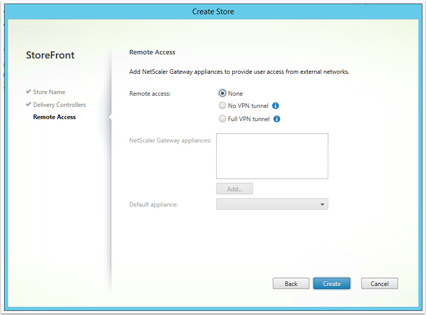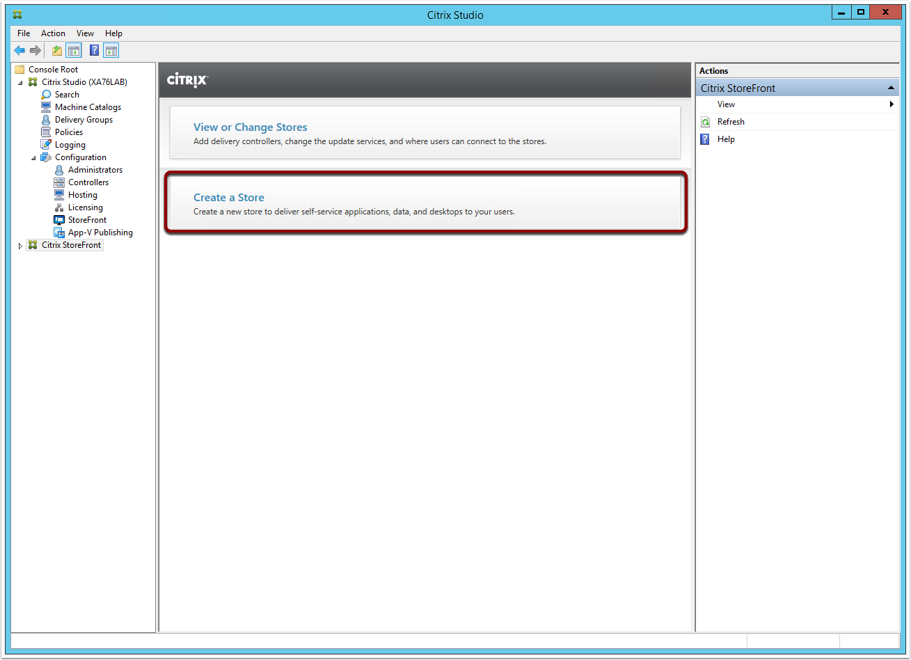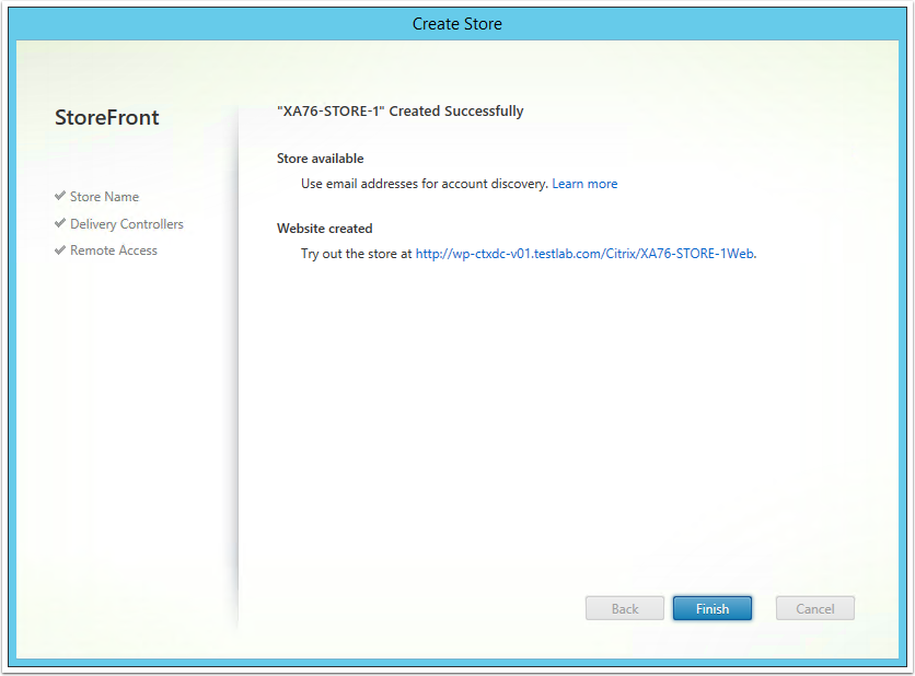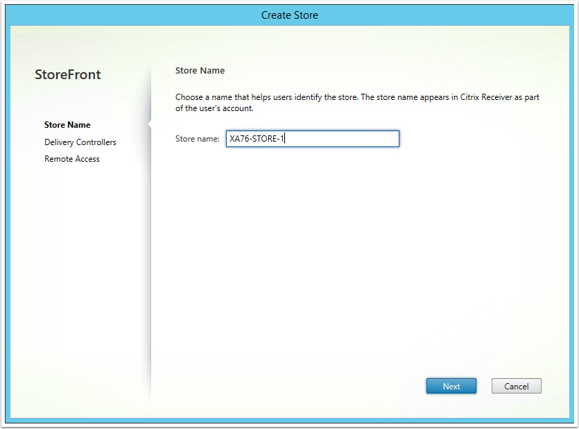 Note: You can also create a Citrix Store via the Citrix StoreFront Management Console