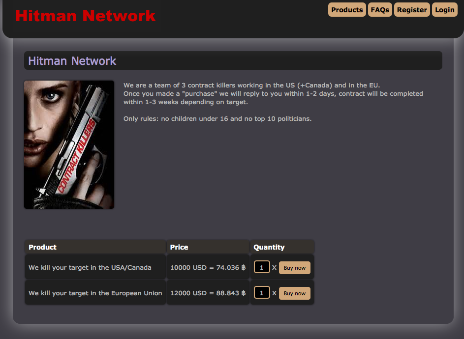 Cybercrime: Inability to track down criminals. Activities range from the sales of illegal drugs and weapons, to hacking services, the hiring of contract killers etc...