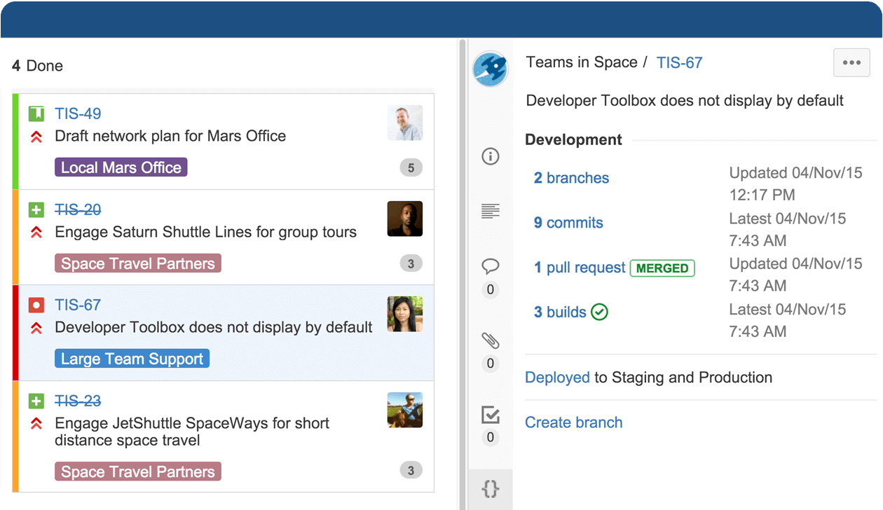 Jira is a proprietary issue tracking product, developed by Atlassian. It provides bug tracking, issue tracking, and project management functions.