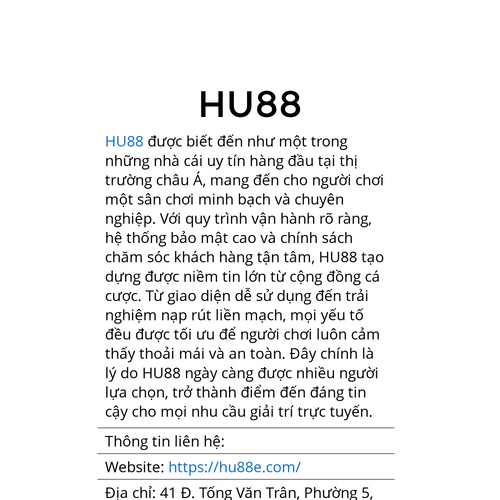 HU88 được biết đến như một trong những nhà cái uy tín hàng đầu tại thị trường châu Á, mang đến cho người chơi một sân chơi minh bạch và chuyên nghiệp. Website: https://hu88e.com/