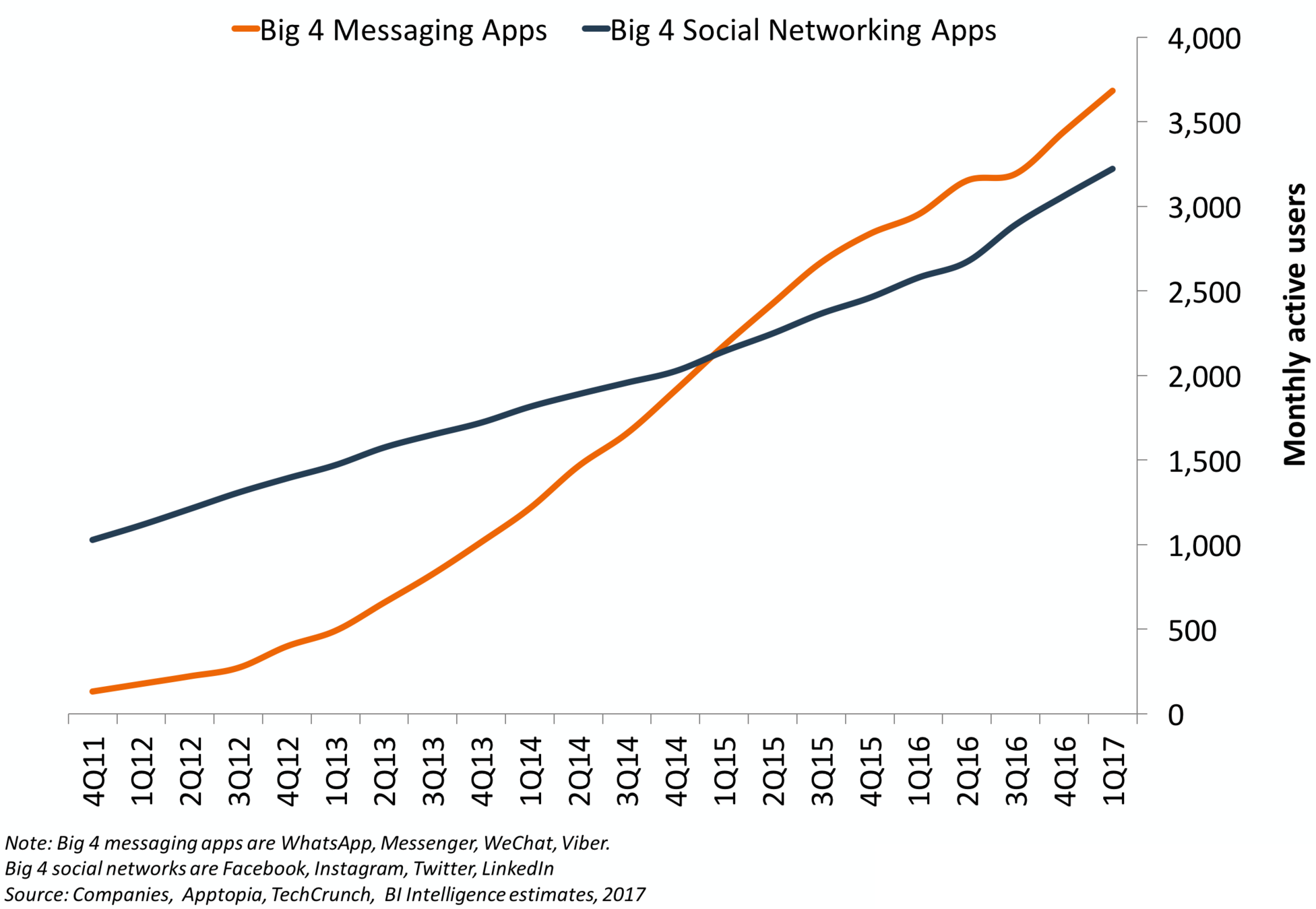 На початку 2016 року найбільші месенджери вперше обігнали найбільші соцмережі за кількістю активних користувачів