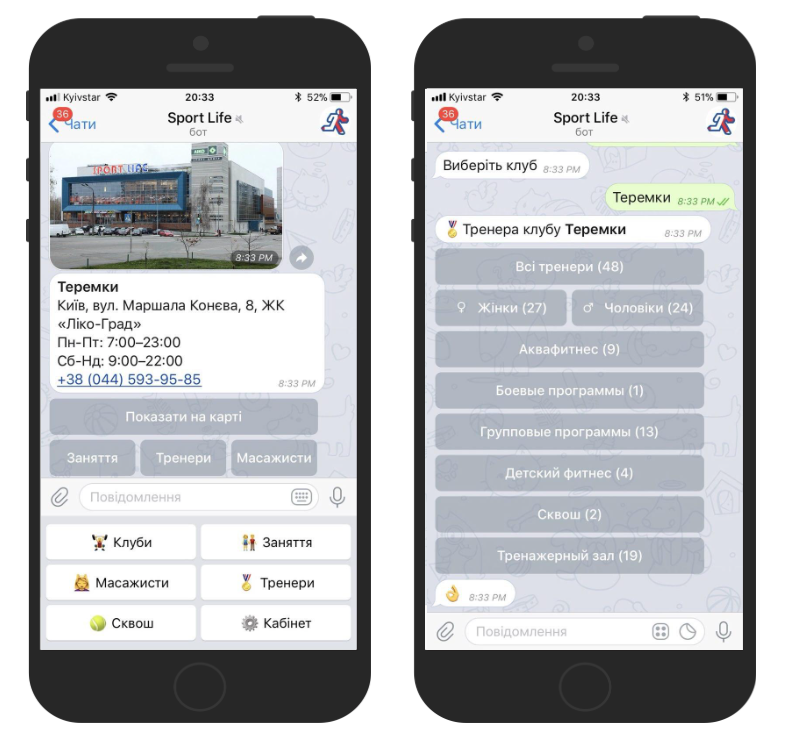 Отримання інформації та рейтингу тренерів і масажистів з можливістю записатися до них