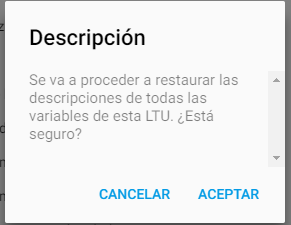 En esta pantalla se podría incluir una descripción nueva, o restaurar el valor original de dicha variable.