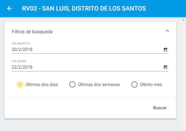 Por defecto viene definido el intervalor "2 últimos días", no obstante se puede modificar para disminuir o ampliar el rango de fechas.
