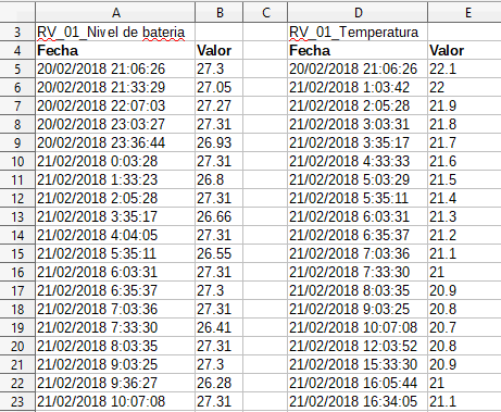 Se puede visualizar el listado de variables asociadas a dicho perfil y consultar los datos históricos con las mismas funcionalidades que las LTUs.