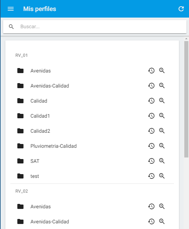 En esta opción de menú encontraremos un listado de los perfiles de variables asociados al usuario y agrupados por el campo "group"