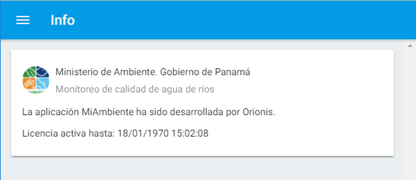 La última opción de menú es el nombre de la aplicación, y se pueden consultar datos sobre quiénes participaron en la creación de la aplicación. Dichos datos también se configuran en la aplicación de gestión.