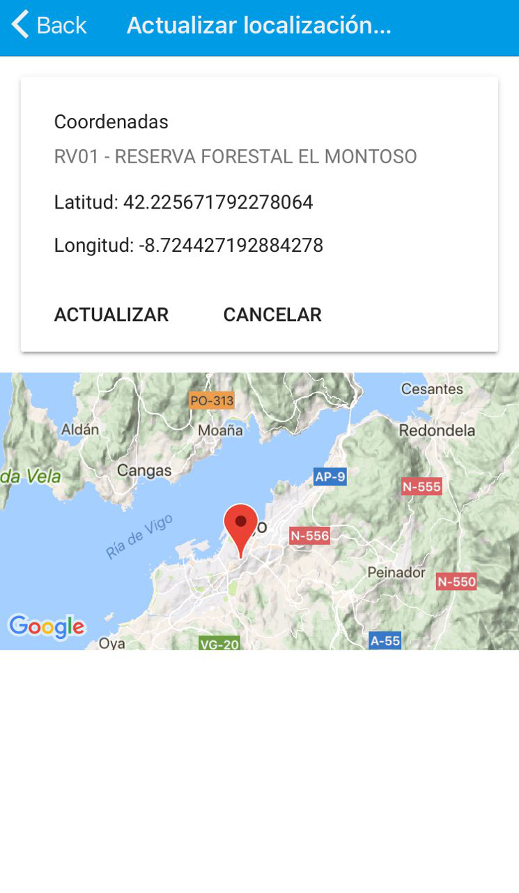 La localización se recoge del GPS del teléfono. Para poder acceder a el hace falta que el usuario permita acceder al GPS y que esté activada la localización. Si no está activada la localización la aplicación abrirá automáticamente el menú concreto del teléfono para permitir habilitarlo.