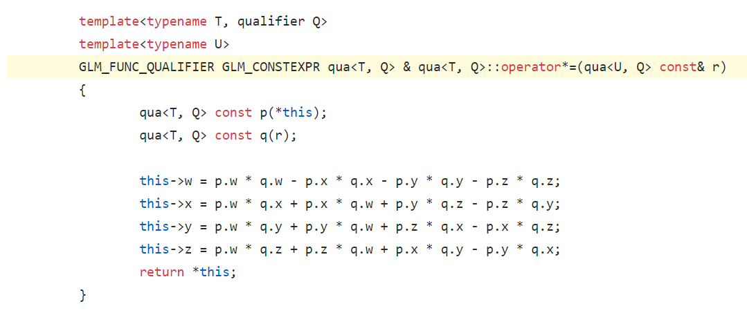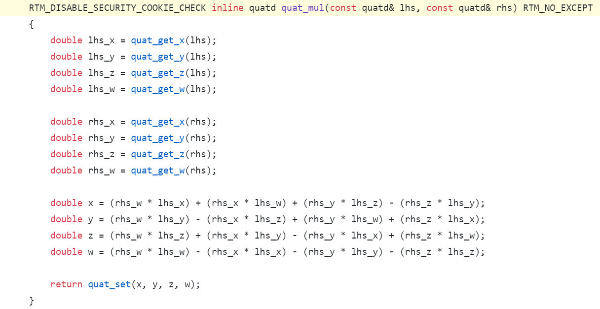 q3.w = q1.w * q2.w - q1.x * q2.x - q1.y * q2.y - q1.z * q2.z;