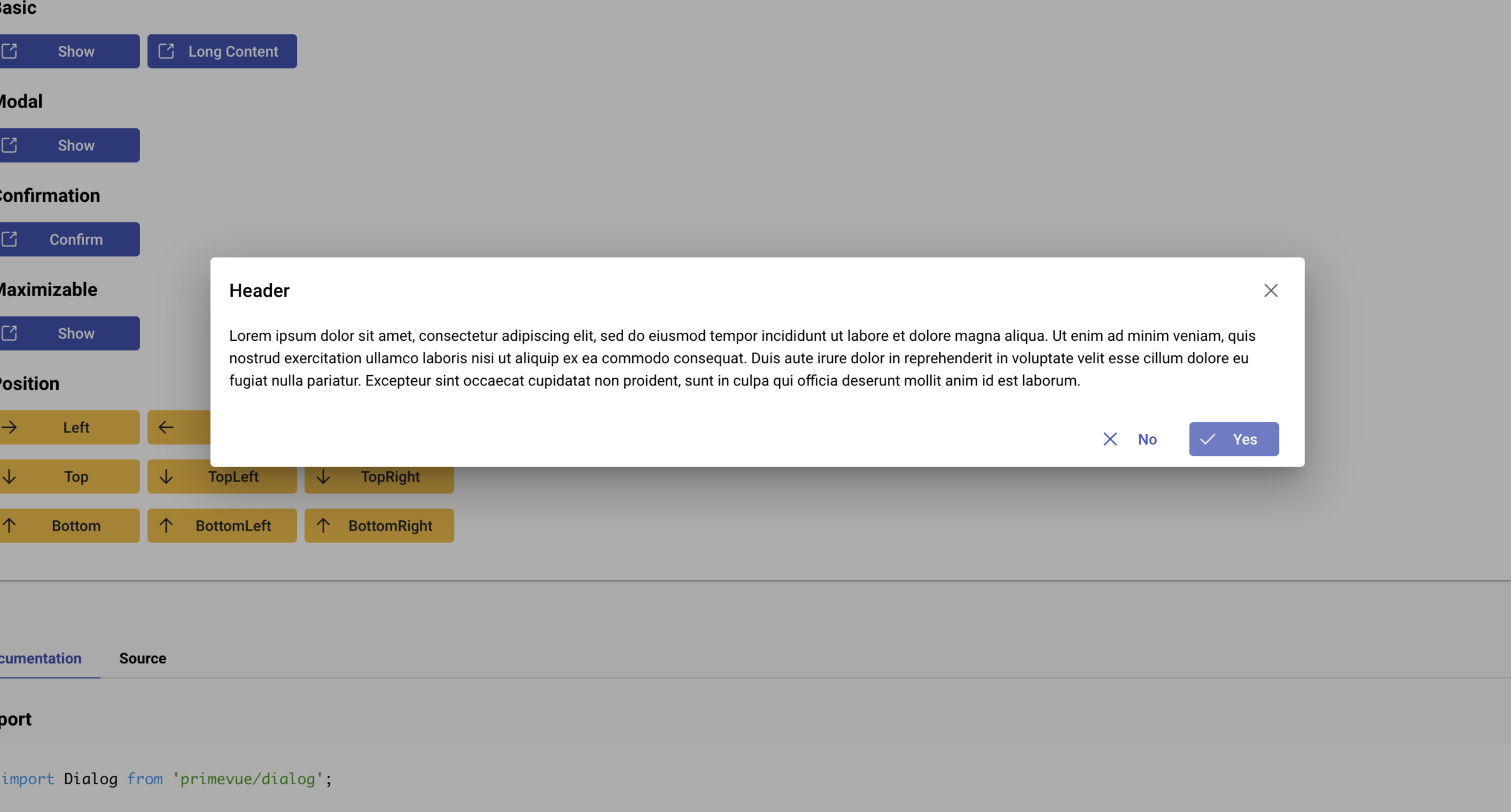 PrimeVUE - Dialog