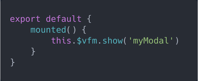 this.$vfm.show('myModal')