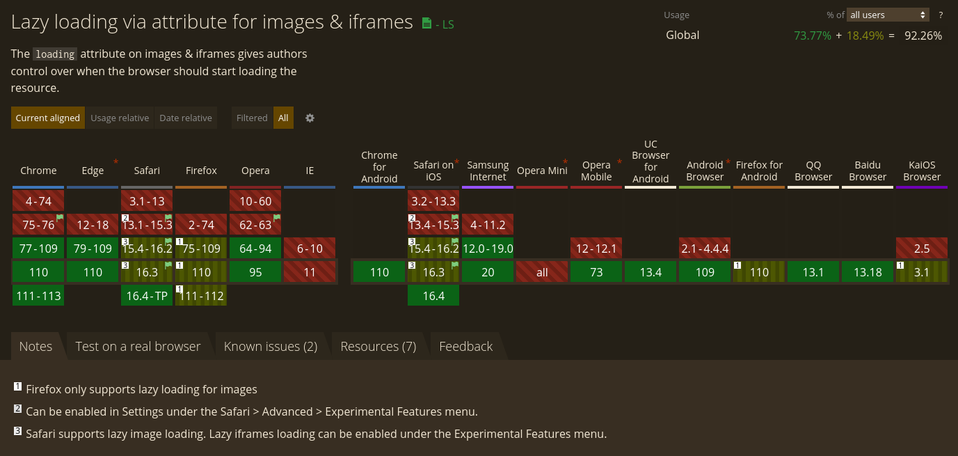 Browsers & tools support varies