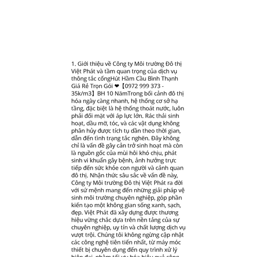 Website: https://hutbephotvietphat.vn/hut-ham-cau-binh-thanh-bid5616.htmlhttps://hutbephotvietphat.vn/hut-ham-cau-binh-thanh-bid5616.html 1. Giới thiệu về Công ty Môi trường Đô thị Việt Phát và tầm quan trọng của dịch vụ thông tắc cốngHút Hầm Cầu Bình Thạnh Giá Rẻ Trọn Gói ❤️【0972 999 373 - 35k/m3】BH 10 NămTrong