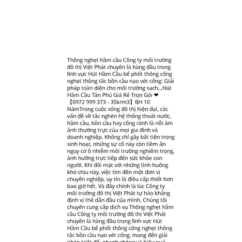 Website: https://hutbephotvietphat.vn/hut-ham-cau-tan-phu-bid5620.htmlhttps://hutbephotvietphat.vn/hut-ham-cau-tan-phu-bid5620.html Thông nghẹt hầm cầu Công ty môi trường đô thị Việt Phát chuyên là hàng đầu trong lĩnh vực Hút Hầm Cầu bể phốt thông cống nghẹt thông tắc bồn cầu nạo vét cống: Giải pháp toàn diện