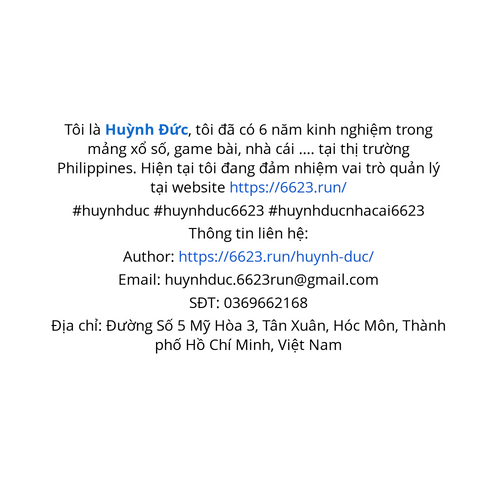 Tôi là Huỳnh Đức, tôi đã có 6 năm kinh nghiệm trong mảng xổ số, game bài, nhà cái .... tại thị trường Philippines. Hiện tại tôi đang đảm nhiệm vai trò quản lý tại website https://6623.run/ Website https://6623.run/huynh-duc/