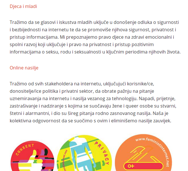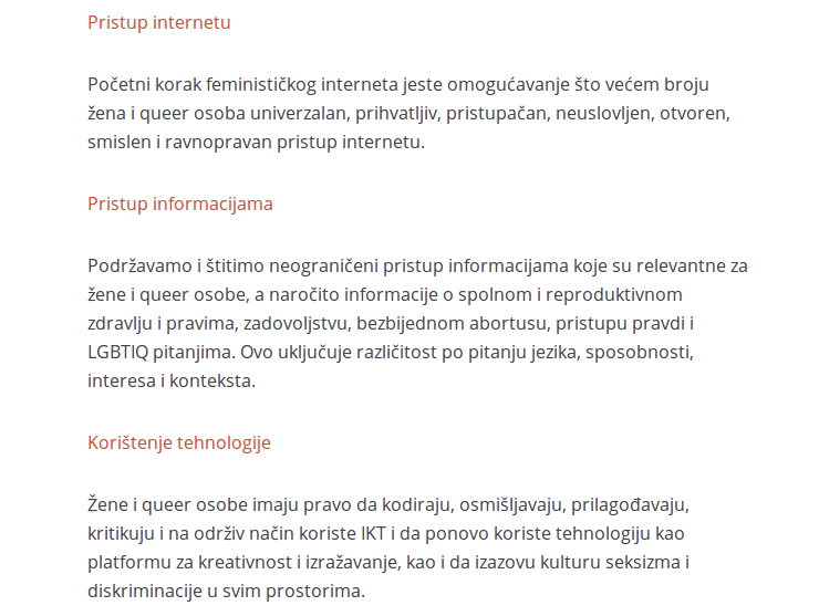Feministički internet ima za cilj osnaživanje što većeg broja žena i queer osoba – u svoj našoj različitosti – kako bismo u potpunosti uživali/e naša prava, upustili/e se u igru i tražili/e zadovoljstvo te razoružale patrijarhat. To doprinosi integraciji naših različitih realnosti, konteksta i specifičnosti – uključujući uzrast, invaliditet, seksualnost, rodne identitete i izražaje, socio-ekonomske položaje, politička i vjerska uvjerenja, etnička porijekla i rasne oznake.