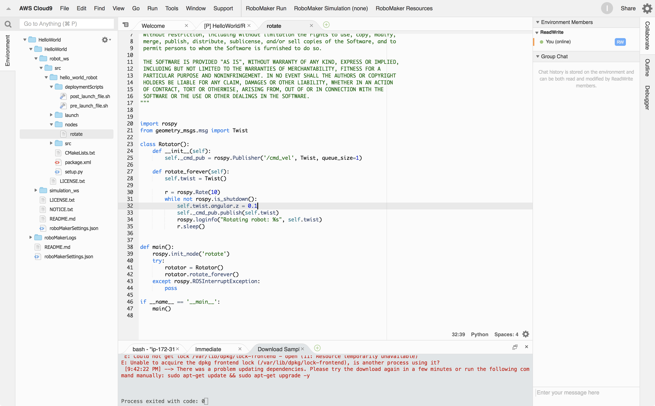 - https://docs.aws.amazon.com/robomaker/latest/dg/getting-started.html
